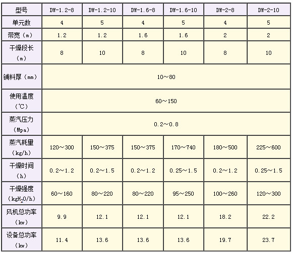 物料同加料器均勻地鋪在網(wǎng)帶上,網(wǎng)帶一般采用12~60目不銹鋼絲網(wǎng),由傳動裝置拖動在干燥機內(nèi)移動。干燥機由若干單元組成,每一單元熱風獨立循環(huán),部分尾氣由專門排濕風機排出,廢氣由調(diào)節(jié)閥控制,熱氣由下往上或由上往下穿過鋪滿物料的網(wǎng)帶完成熱量與質(zhì)量傳遞的進程,帶走物料水份。網(wǎng)帶緩慢移動,運行速度可根據(jù)物料溫度自由調(diào)節(jié),干燥后的成品連續(xù)落入收料器中。上下循環(huán)單元 根據(jù)用戶需要可靈活配備,單元數(shù)量亦可根據(jù)需要選取。